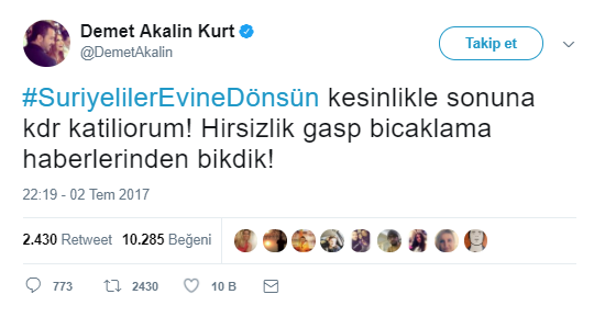 Evet, Suriyeliler evine dönsün özgürce yaşasın, bomba sesleriyle uyumasın, arkadaşlarını gömmesin, annesini babasını toprağa vermesin. Üniversiteler açalım, okusunlar sevgili olsunlar, sevişsinler, kırlarda uzansınlar.