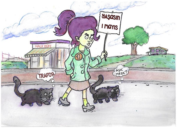 ankara valiliği'nin "1 mayıs kim? sen kimsin?" konulu tespiti gayet yerindedir. sendika dediğin yürümez, oturduğu yerden olanı biteni kınar, kabul edilemez bulur. yürüyecek olsa onca binayı, makam arabasını niye alsın? salak mı yani? işçinin canı çıkıyo "aidatımı ödeyim de başganımın makam odası konforlu olsun, rahat otursun. altına bi mersedes çekeyim yolda belde perişan olmasın" diye. yürümek sermayeye özgüdür. "yürü ya kulum" sermaye için kurulmuş bir cümle olup, sendikaların üstüne alınması kabul edilemez. yürümeden 1 mayıs olmaz diyorsak sermayenin yürümesini desteklemeliyizdir. kaldı ki kimin cebi bayram ediyosa, 1 mayıs'ta bayramlaşmak da onun hakkıdır. ben naçizane slogan bilem ürettim kendileri için. valiliğin "mevzuat"a aykırı bulacağını sanmıyorum.