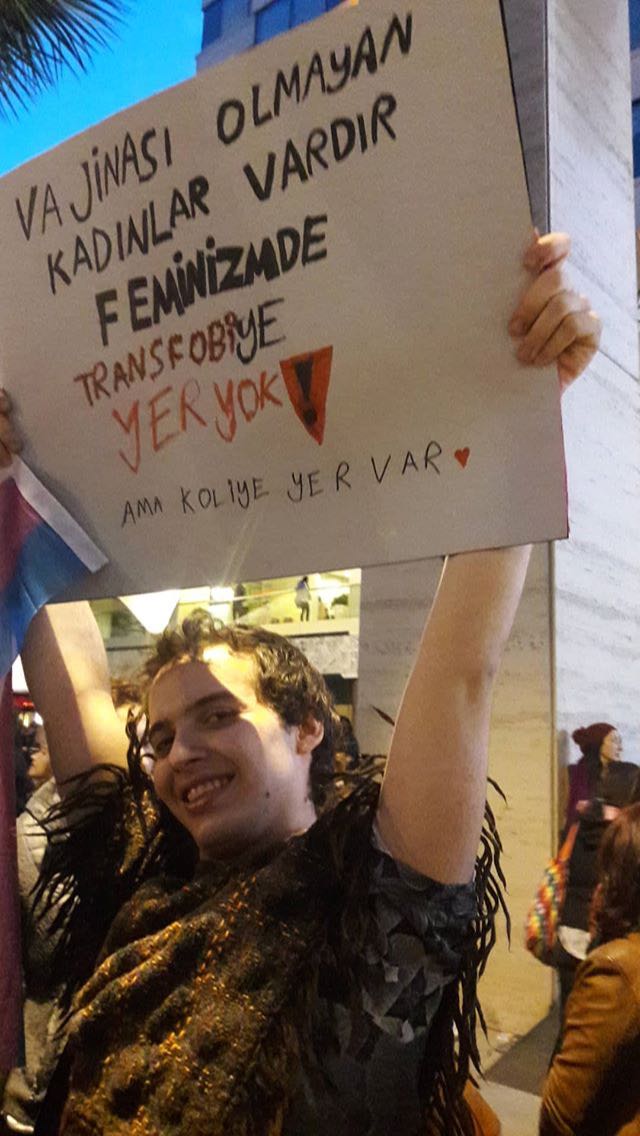 Orada en az (en az, EN AZ) bir tane interseks ben buradayım demişti, en az (en az, EN AZ) bir tane trans buradayım demişti. O an bir interseks ve trans olarak kendi hakkımı savunuyordum çok garipti, güzeldi. Sanki daha önce hiç interseks aktivizmi yapmamışım gibi geliyor böyle söyleyince. Yaptım yapmasına ama bu garip bir deneyimdi spiritüel bir deneyimdi. 8 Mart'ta transfeminen interseks kimliğimi bağırarak yaşadım. Bu benim için uzun zamandır yaşamadığım bir hissi uyandırdı bende. Özgürleşmek. Özgürdüm o anda polislerin gözüne bakarak içimde ne varsa bağırdım. Siz buradasınız şu an ama biz hep buradayız her sokakta her parkta her mahallede ve köydeyiz dedim. Siz İzmir’in polisisiniz ama biz bu dünyanın vatandaşıyız dedim.