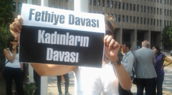 Ankara Kadın platformu üyeleri bugün adliye önünde basında Fethiye Davası olarak bilinen davada tecavüzcüleri savunan Muğla Baro başkanı Mustafa İlker Gürkan’ı protesto ettiği için Ankara Barosu tarafından soruşturulan Avukat Candan Dumrul’a destek vermek için bir basın açıklaması gerçekleştirdi.
