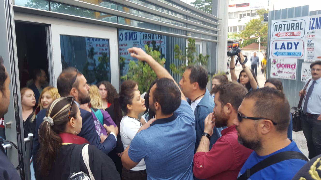 Polis, avukatlara “Bizi tahrik ediyorsunuz. Açıklama yapamazsınız” da dedi. Avukatlar, polisin bu tavrını “Nerdesin aşkım, avukatınım aşkım” sloganlarıyla protesto etti.