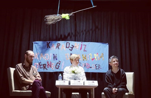 Festival’in “Cins Cins Aşk” başlıklı oturumuna Kaos GL Derneği’nden Aylime Aslı Demir ve Seçin Tuncel; Trabzon Cazıları’ndan Fırat Varatyan katıldı.