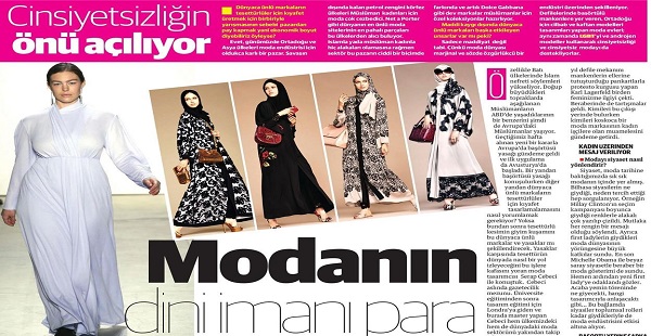 Son haberimiz Yeni Şafak Gazetesinin moda köşesinden olsun… Ayşe Olgun’un Modacı Serap Cebeci ile röportajında, Cebeci moda sektörünün cinsiyetsizliğin önü açtığını ifade ediyor. Cebeci, moda dünyasının marjinal ve “sözde özgürlükçü” bir endüstri üzerinden şekillendiğini, defilelerinde başörtülü mankenlere yer veren, moda evlerinin; aynı zamanda LGBT'yi ve androjen modellere de fırsat sunmasından yakınıyor.